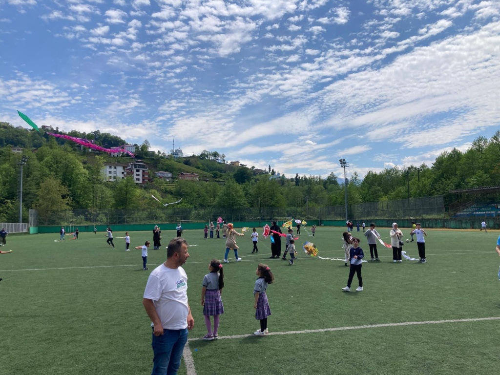 Öğrenciler, veliler ve öğretmenlerle beraber düzenlenen uçurtma...
